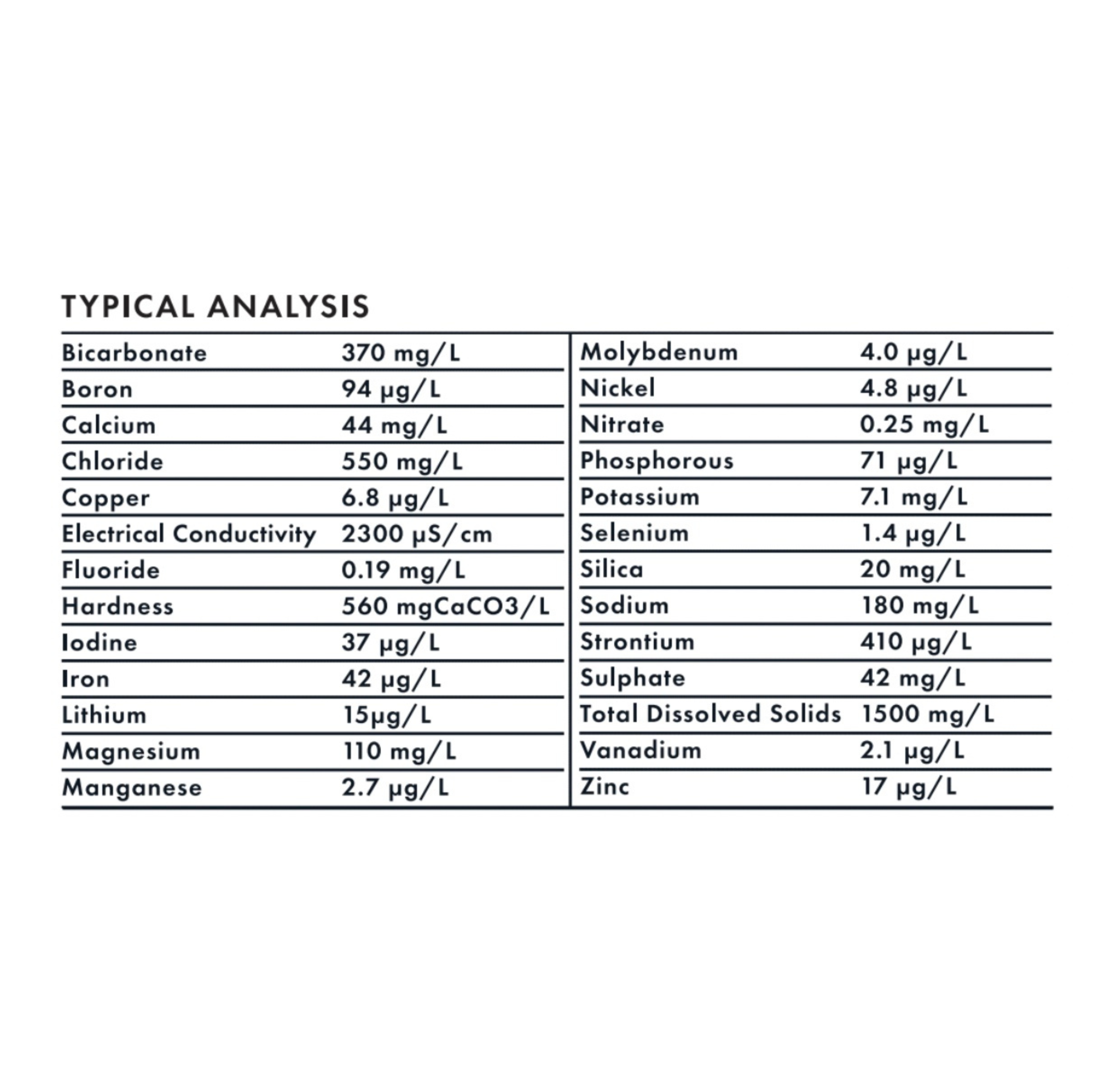 Naturally rich in magnesium (110 mg/L) and a unique blend of electrolytes, One Tree Mineral Water hydrates while supporting muscle recovery and overall well-being. With a smooth alkaline pH and zero additives, it’s pure mineral water - just as nature intended.