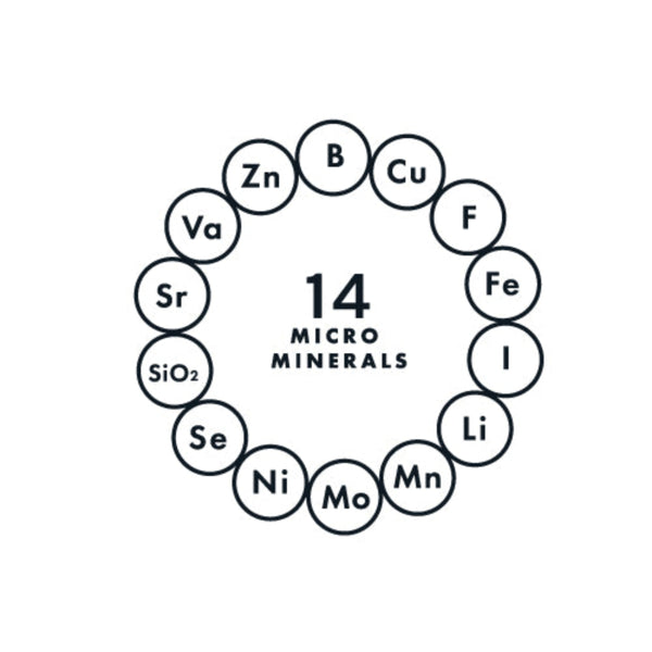 Our mineral water naturally contains 7 macro minerals and 14 micro minerals, filtered through ancient volcanic rock. These minerals are found in ionic form, making them highly bioavailable - easily absorbed and used by your body.